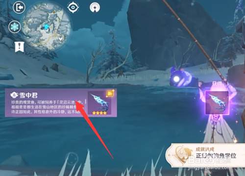 最后在雪山的这个钓鱼点就可以钓出雪中君了,如下图所示