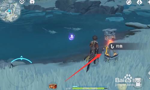 然后过来以后找到雪山的钓鱼点,如下图所示