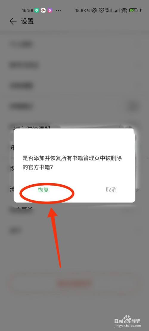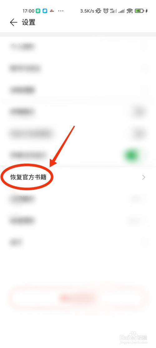 页面跳转后,我们点击“恢复官方书籍”。