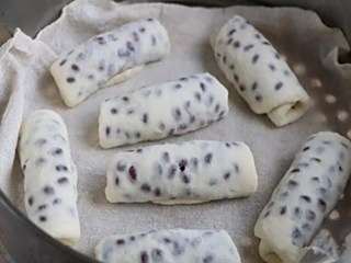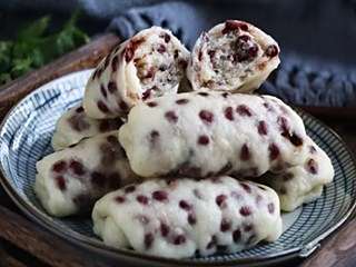 山药清洗干净,去皮,切成小块,放入蒸锅中,蒸熟,碾压成泥,倒入面粉、酵母水和白糖,揉匀,分成15g/个,揉圆,压扁,放入红豆,收口,擀成椭圆形,卷起,放入蒸锅中,蒸熟。