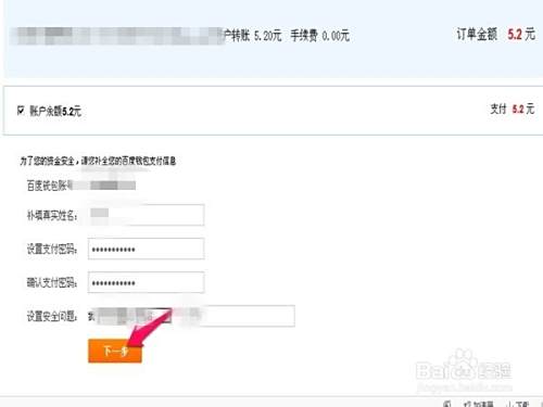 选择从账户余额支付,如果没完善自己的相关信息,在这里补充完整,然后点击“下一步”