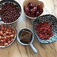 这款五红汤加入了中药黄芪,滋润、补血、补气,非常好喝的一种养生汤。所谓五红:红豆、花生、枸杞、红枣、红糖,五红全是宝哦
