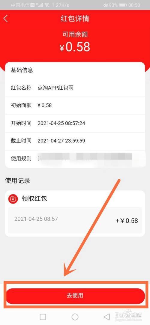 进入红包雨详情后,点击最下方的【去使用】即可。这样我们就知道点淘红包雨怎么使用了。