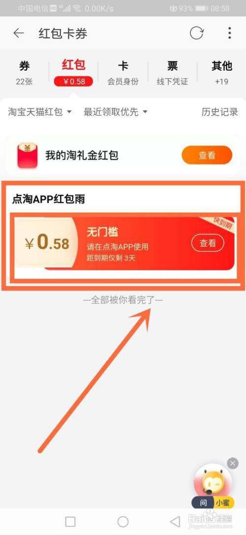 在使用点淘的过程中,我们可以通过点击进入卡券的红包雨来使用红包雨的功能。