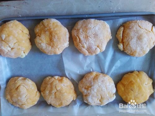 然后搓成一个个小饼,放到烤盘里。
