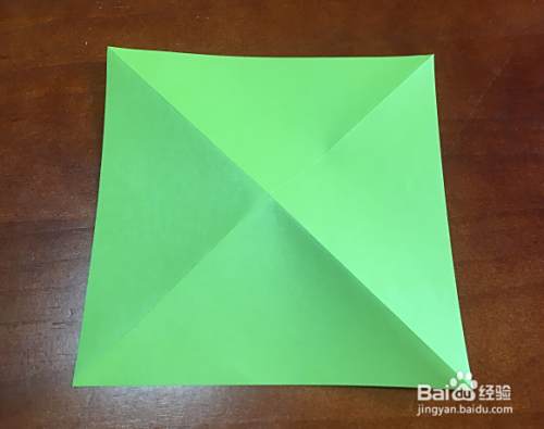 取正方形彩纸一张,对角折叠,出现X折痕。