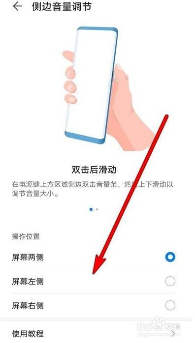 3、选择操作的位置,可以在屏幕左右两边的电源键上方区域侧边双击音量条,然后向上滑动即可。