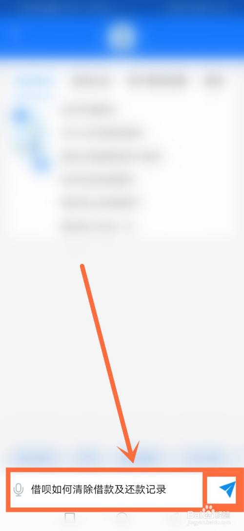 接着在对话栏内,输入借呗如何清除借款及还款记录,并点击发送图标进入。如图