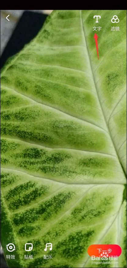如图所示,导入或拍摄视频后,点击右上角的文字工具,开始添加文字