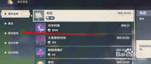 找到白石温泉图纸并点击,再点击右下方的兑换选项。