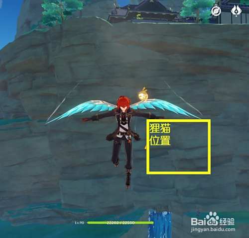 悬崖上那个位置有点难找,在瀑布上方的一处崖壁上