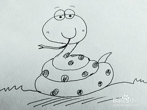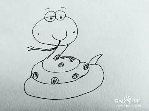 第三步,我们来画卡通小蛇的身体,盘旋,如下图