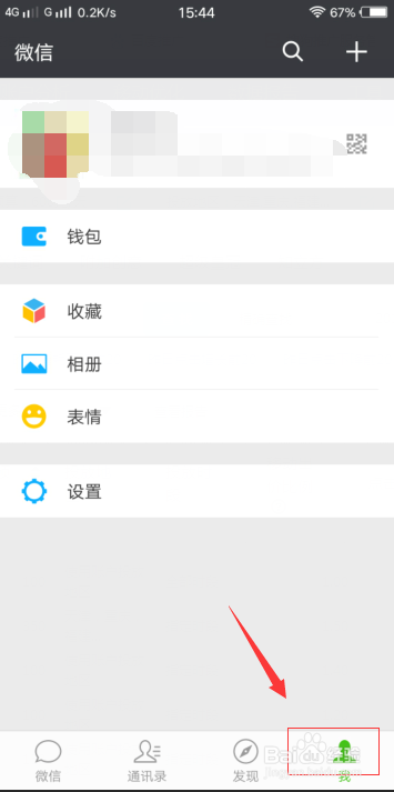 第一,在手机上登录微信软件,进入微信首页,点击微信右下角的 我 选项,进入个人信息页面,如下图所示;