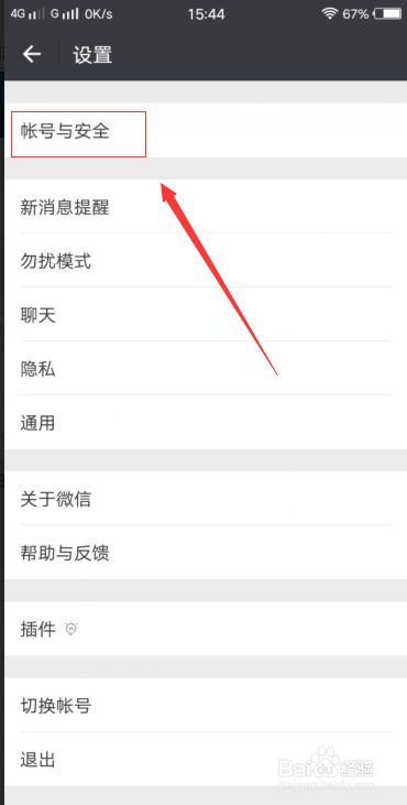 第三,点击设置中的 账号与安全 选项,进入账号与安全 页面,如下图所示;