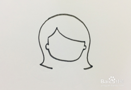 1、先画出老师的头发和脸部的轮廓,画出斜刘海。接着画出五官,弯弯的眉毛和嘴巴,大大的眼睛。