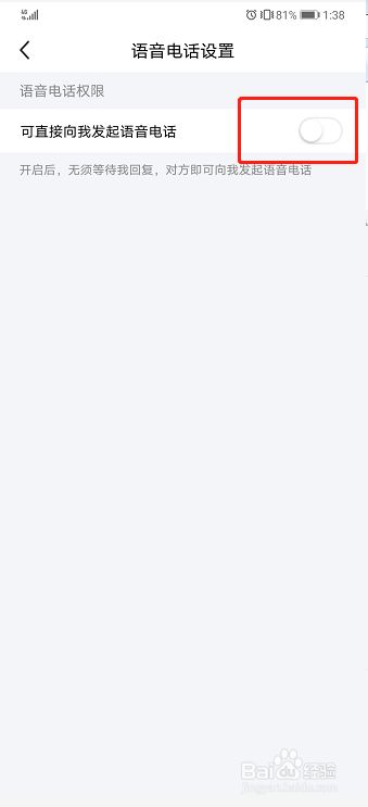 将【可直接向我发起语音电话】开关打开即可完成