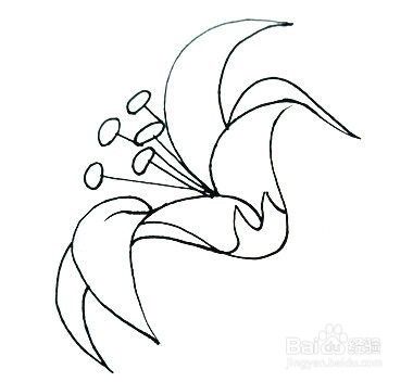 然后画上其他方向的叶子,让百合花的形状更加的美观,更加的饱满;