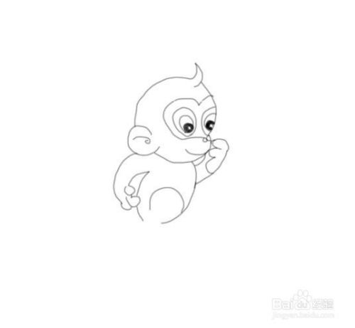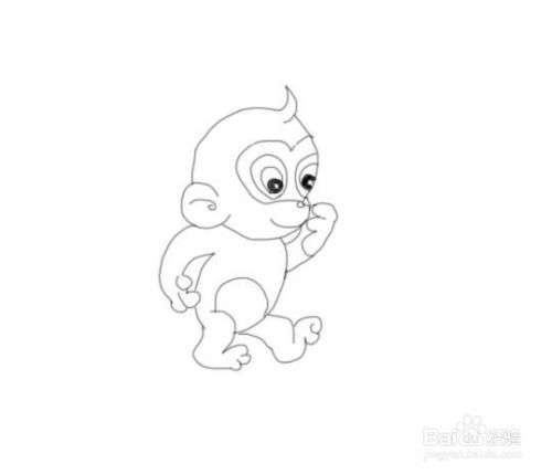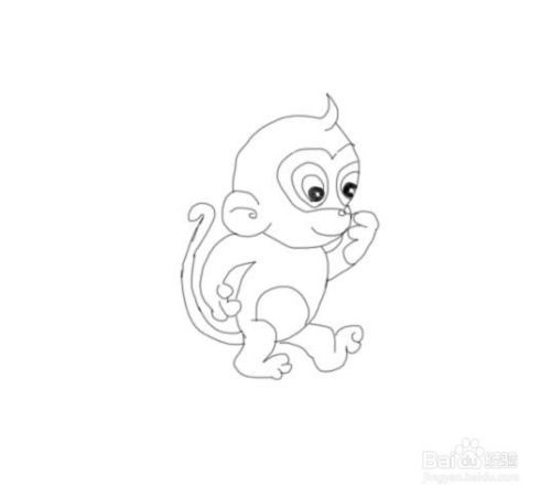 最后再在身体的后面我们再画出小猴子的尾巴,这样小猴子就画好了,如图所示: