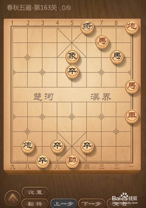 QQ象棋春秋五霸第163关,通关共需九步。这一关可以看见三个黑兵已经把红帅围住了,常言说得好,过河的卒子当车用,可见情况之危急,红方必须立刻掌握主动权,对黑方发起进攻。