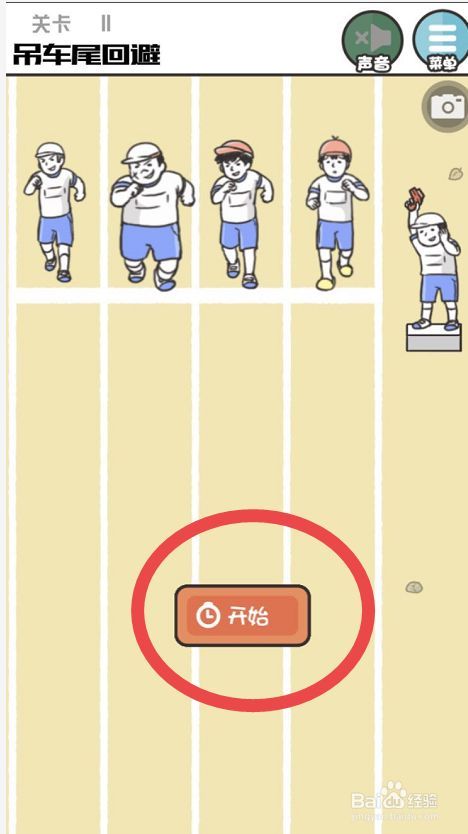 点击神回避2手游中的第十一关,开始第十一关的挑战,第十一关的挑战主题是吊车尾回避,也就是说不要做最后的那个人。