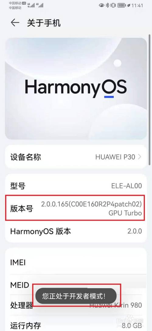 在关于本机信息页面,指关节双击版本号信息后,进入开发者模式。