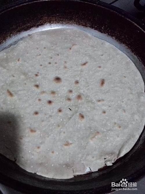 平底锅烧热后改最小的火,放入擀好的面片,用手翻动,反复反面烙成焦黄色即可。