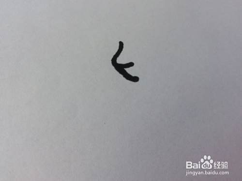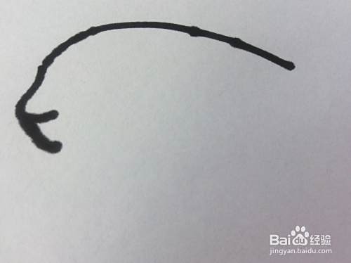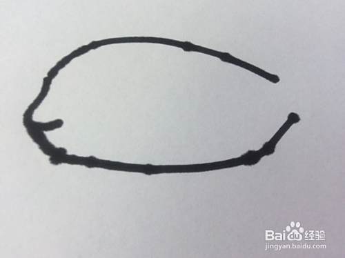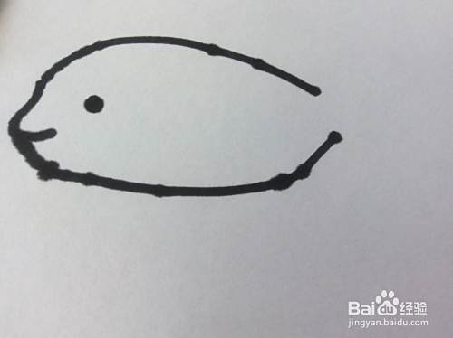 在小鱼的左侧,画出小鱼的嘴巴,小鱼的嘴巴是向左突出的。