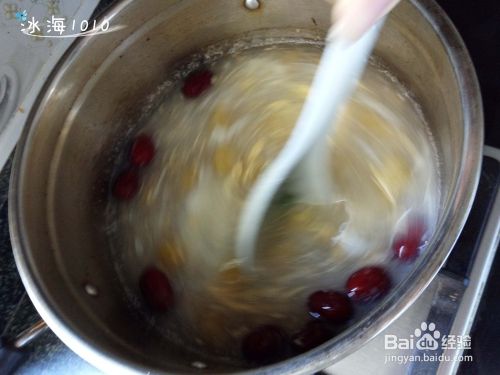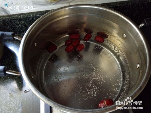 另取一锅,加入三碗水,加入红枣,大火煮开;