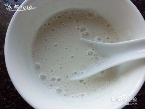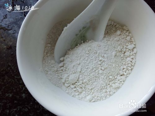 取两勺竹薯粉,是勾芡用的,能勾芡的粉都行,竹薯粉比较去热气;用少量凉白开调成浆;