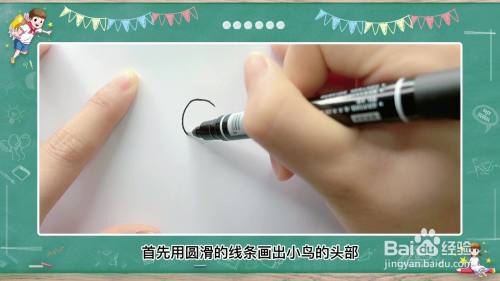 首先用圆滑的线条画出小鸟的头部和身体部分,