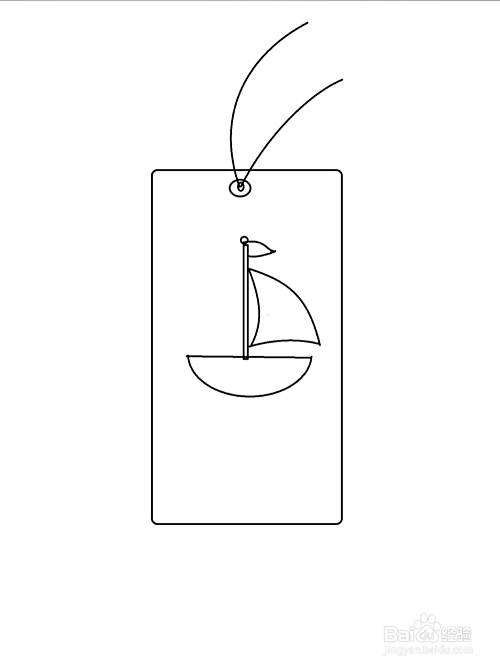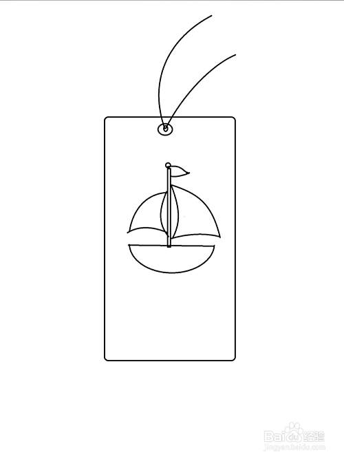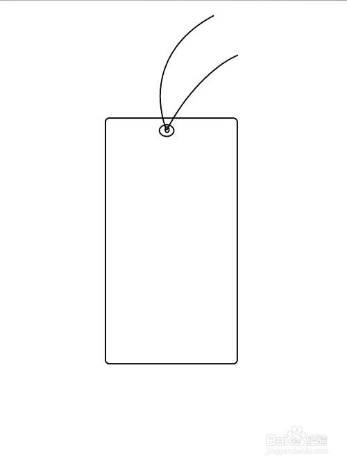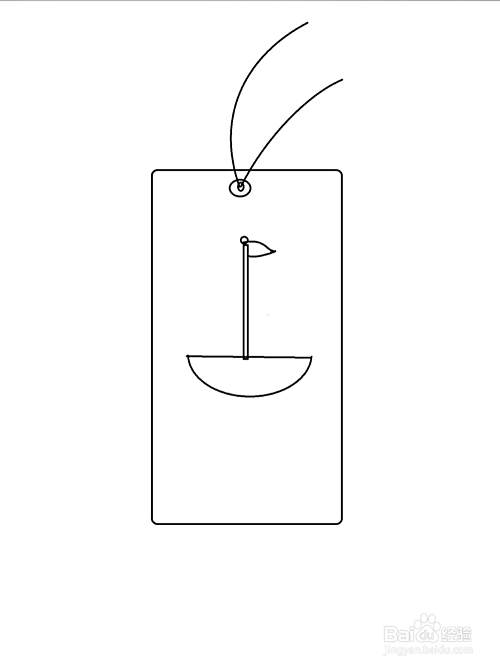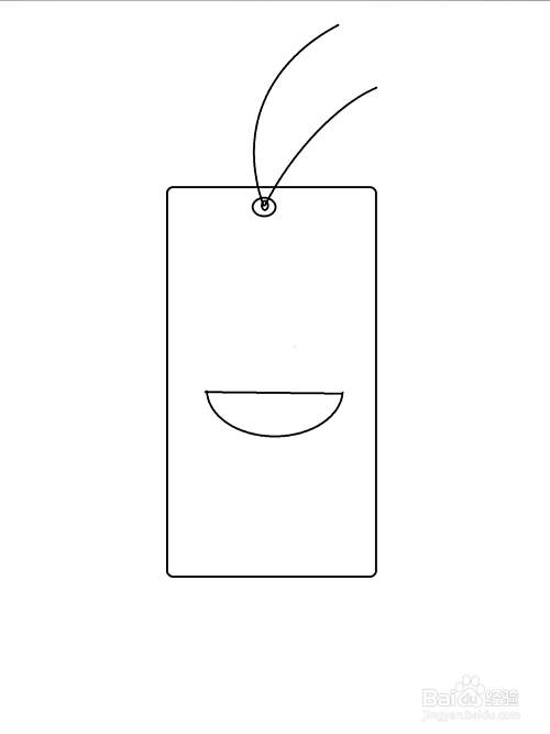 接下来画出穿过洞眼的两个绳带。然后在书签上画出一个半圆。