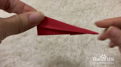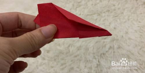翻到另一面,向下折一个小的斜边三角形,再向下折一个大的斜边三角形。这样简单的折飞机就折好了。