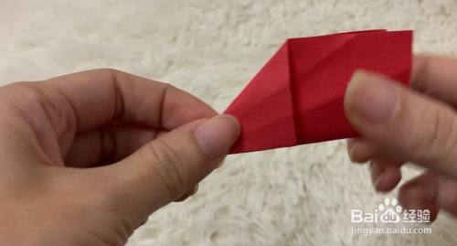 将纸沿着中间点对称向上合起来。