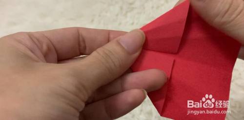 沿着中间线,折一个小的三角形。