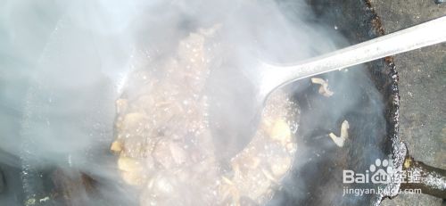 锅中烧油,油热放花椒大料葱花姜片爆香,放肉片翻炒变色,加少许料酒去腥,加老抽翻炒上色,加盐、味精翻炒均匀,加一点水防止糊锅。