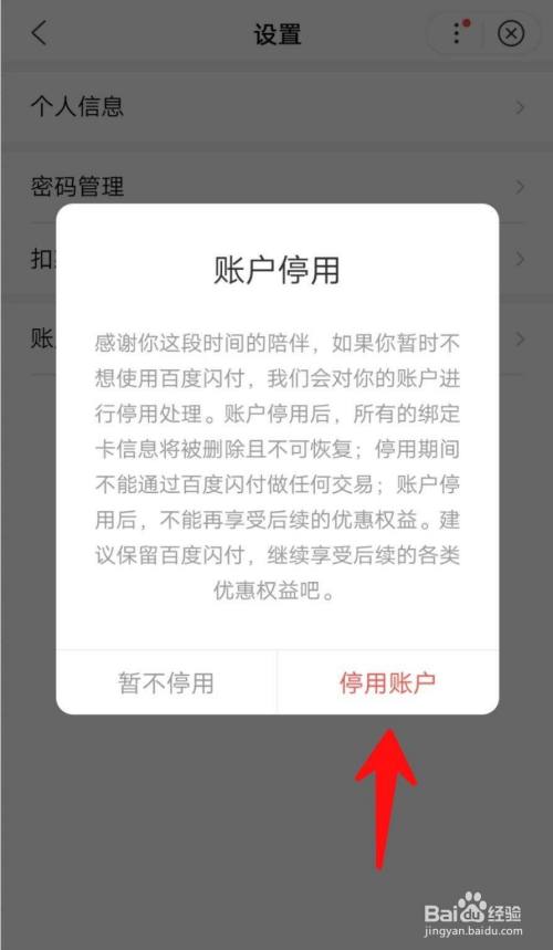 打开手机百度……百度闪付……闪付卡……设置……账户停用