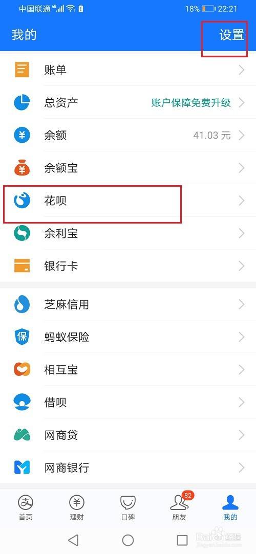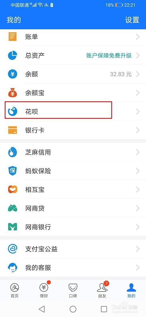 第一步打开支付宝,首先登录的账号开通花呗,然后点击设置,选择换账号登录