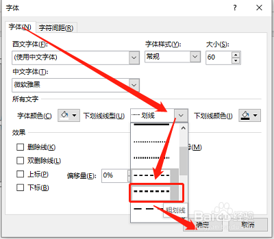 2.在字体中拓展选项中,点击添加“粗划线”下划线即可。