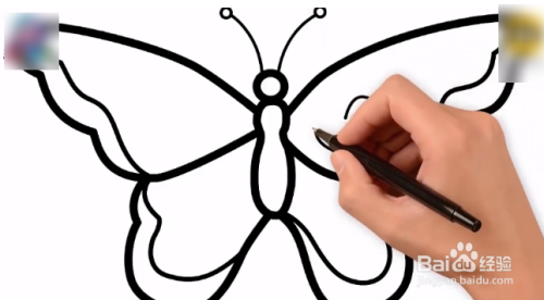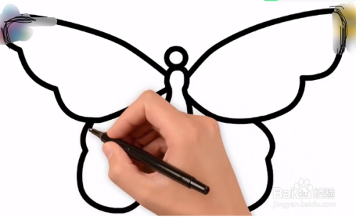 画出蝴蝶的翅膀。两边的翅膀要对称。