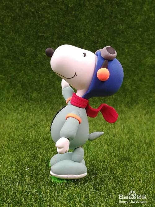 在两侧粘好眼镜腿,粘上眼睛,搓一根红色泥条做围巾