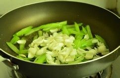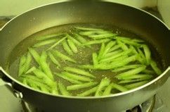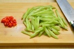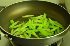 锅里烧开水,放入适量橄榄油,将切好的西芹焯水后立刻捞出;