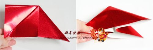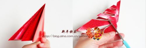 现在我们加入一点折纸的技巧,马上能剪出个四面立体的春字。如果加入绳子挂起来,还能做很好的挂饰布置家居。