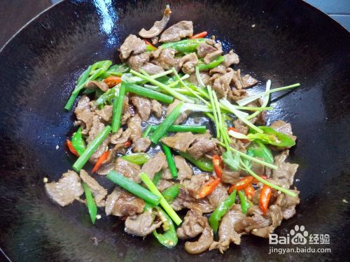 临出锅时,加入香菜与小葱段,炒匀即可盛盘。
