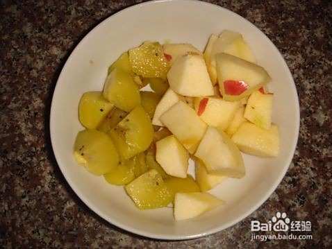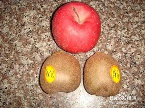 苹果一个,猕猴桃2个(亲在做时最好只放一个就够了)红枣枸杞适量,泡洗干净。