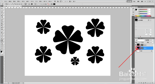 选择形状选项栏中的小花图案,绘制出小花图案;