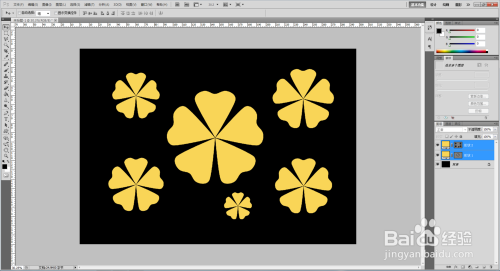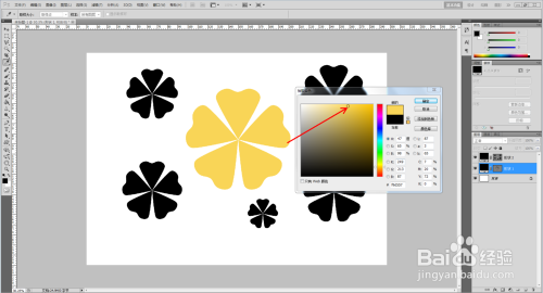 双击小花图案图层前面的色块,将图案设置为黄色即可。