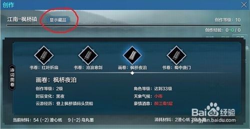 江南大地图范围内可以进行的所有创作,你一一点击上去,看说明告诉你具体要在哪个场景内进行创作,接下来你要做的便是----策马扬鞭,奔去那个场景,点击创作。