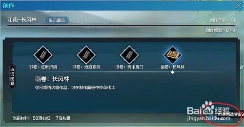有了技能按钮,下面要做的就是买创作墨宝所需的材料了,OK有了以上创作所需的道具,我们就可以正式开始创作了。具体创作的流程首先,你点击创作这个技能,会出现一个如下提示框。