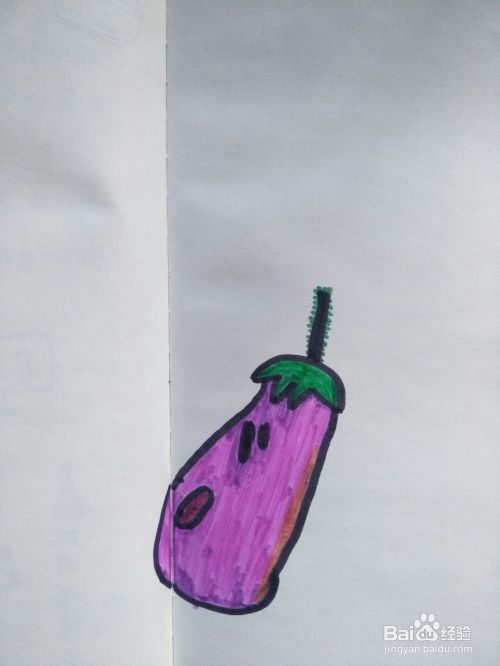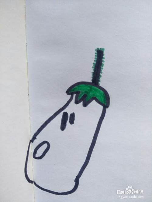这时候在茄子的主体部分来一点点缀,不然看起来就太单调了,这里是画了两条线。