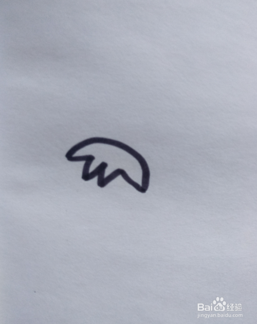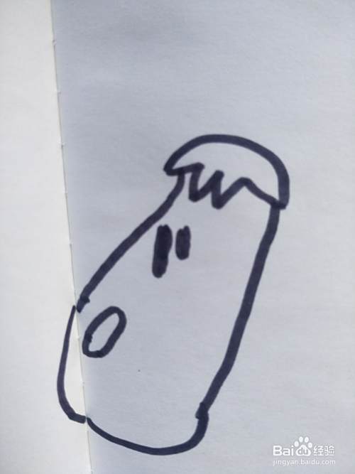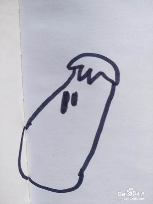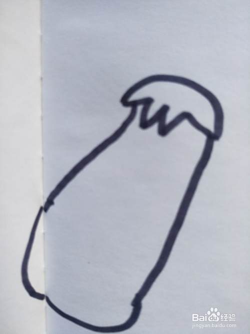 在白纸上用黑色的笔画出茄子头,就是带叶子的那部分,注意在下方画出一定的褶皱。